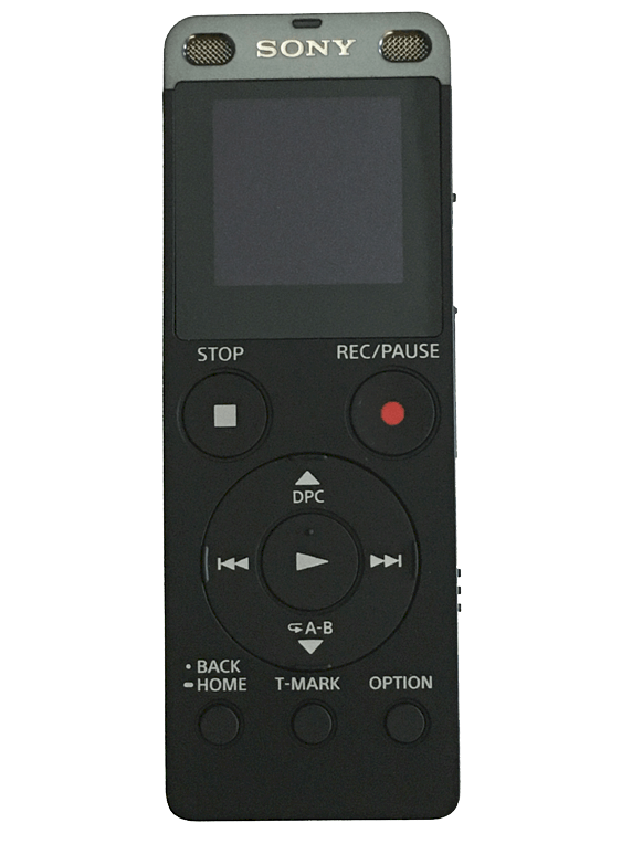 Our Sony ICD-UX560 Stereo Digital Voice Recorder has been specially engineered to work with the Secret Prompter system. It turns your recorded speech into audio signals and transmits the signal to the audio transfer loop. It has also been modified to allow the hidden switches to interact with the recorder to pause on demand.